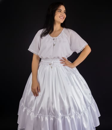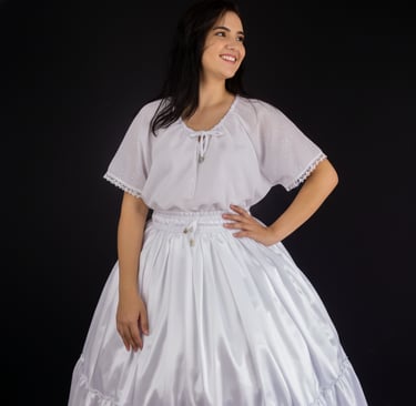 Mulheres: Roupas brancas como calça de algodão, saia e abadá ou camiseta.
